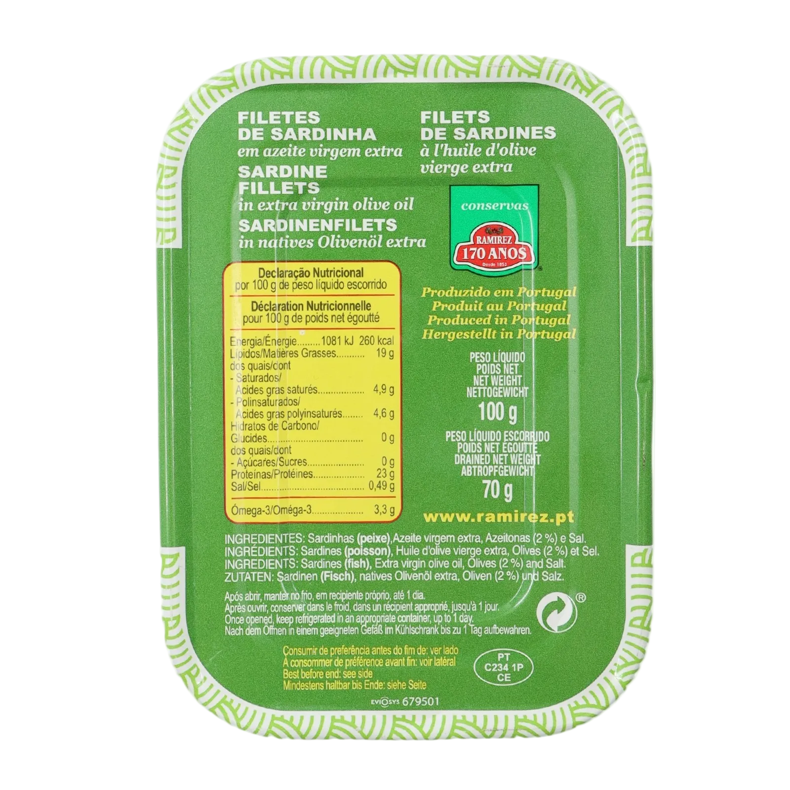 Odkryj wyrafinowany smak filetów z sardynki Ramirez bez ości, starannie zakonserwowanych w najwyższej jakości oliwie z oliwek extra virgin. Każdy delikatny filet rozpływa się na podniebieniu, dostarczając bogate kwasy omega-3 i autentyczny śródziemnomorski smak bez uciążliwości ości. Idealne na eleganckie przystawki, świeże sałatki lub proste chwile z grzanką. Starannie pozyskiwane i pakowane w szczytowej świeżości, te sardynki podnoszą każdą potrawę dzięki łatwej w użyciu elegancji. Rozkoszuj się ponadczasowym portugalskim przysmakiem, który przemienia zwykłe dania w niezwykłe kulinarne doznania.